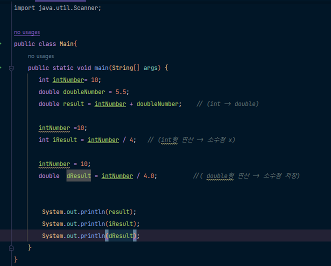- 값손실이 생기기 때문에 개발자가 선택하여서 형변환을 해야한다.