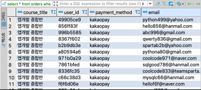 WHERE course_title = "웹개발 종합반" and payment_method = "kakaopay";