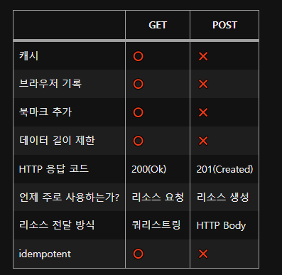- get요청은 캐싱이 가능하므로, 동일한 요청을 반복할 때 서버에 부하를 줄 일 수 있음