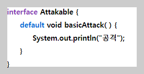 ★ default 메서드는 이미 많은 기능들이 추상메서드들이 있어서 번거로움이 있을 때 대응책으로 인터페이스 구현부에서 활용 할 수 있음