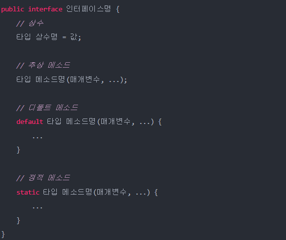 + 자바 8부터는 디폴트메서드와 static메서드도 사용가능