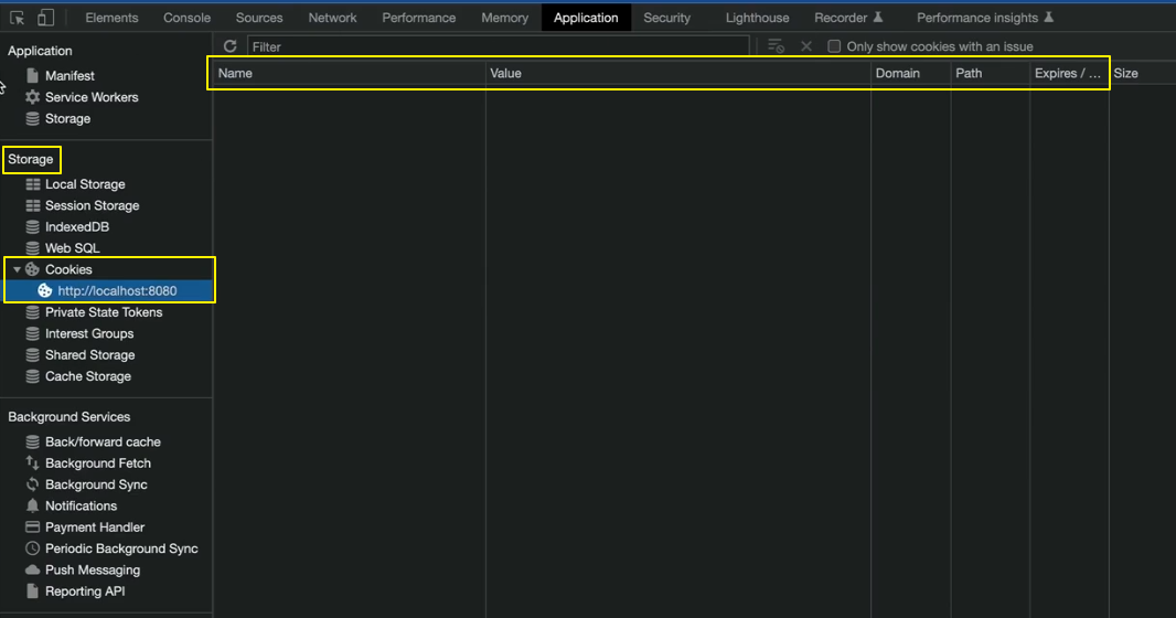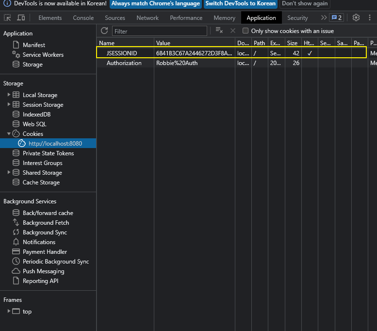 4. 클라이언트는 응답으로 받은 세션을 쿠키에 저장한다.
