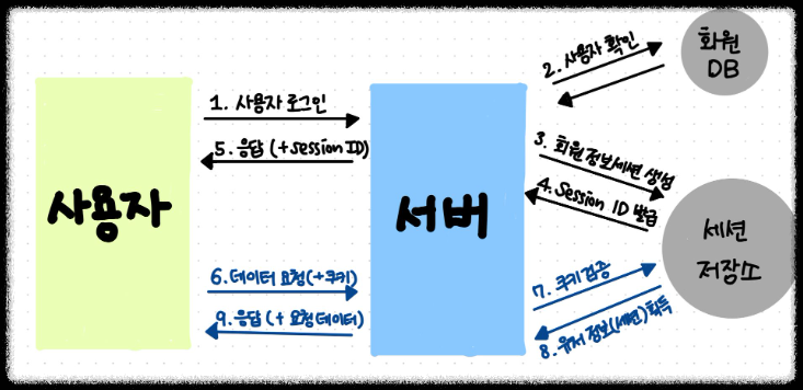 ★해당 방식의 핵심은 사용자의 정보를 세션에 저장하여 서버에서 관리하는 것