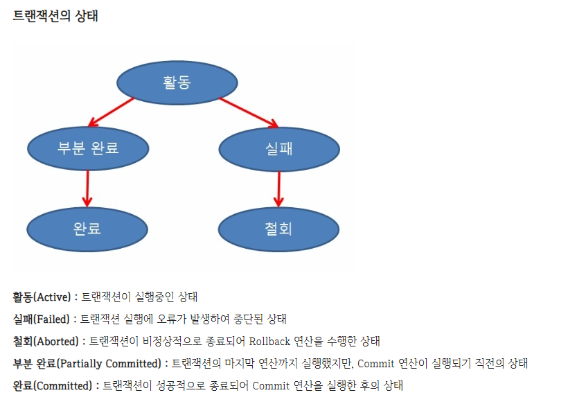 - 트랜잭션 내의 모든 명령은 반드시 완벽히 수행되어야 하며, 모두가 완벽히 수행되지 않고 어느하나라도 오류가 발생하면 트랜잭션 전부가 취소되어야 한다.