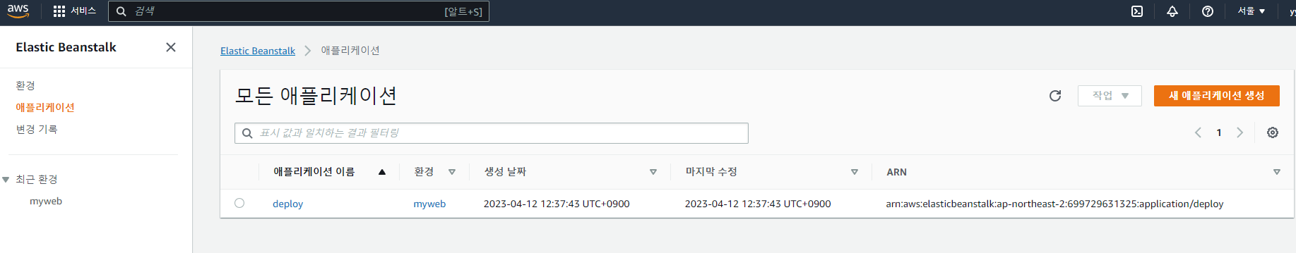 작업을 완료 후 AWS Elastic Beanstalk 등록