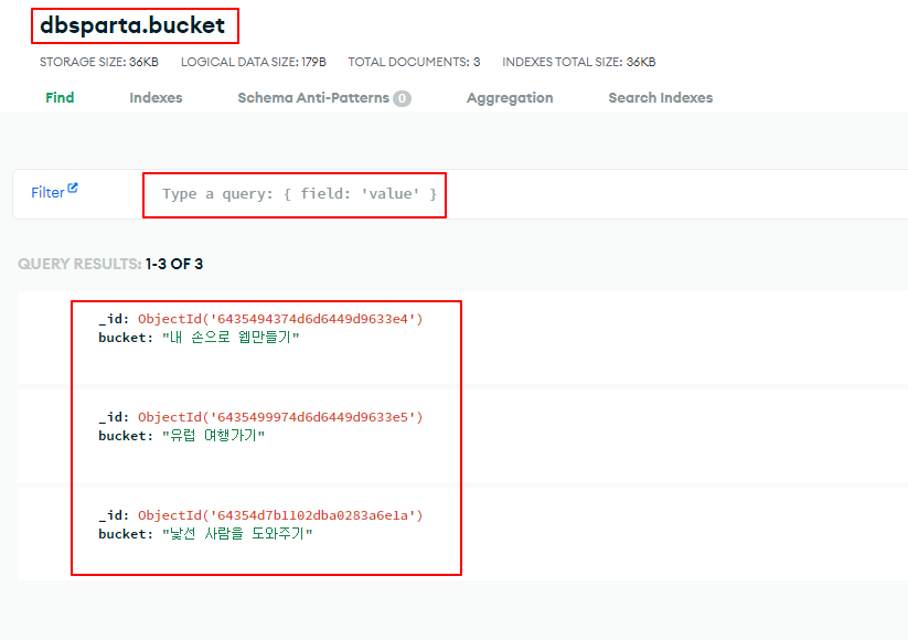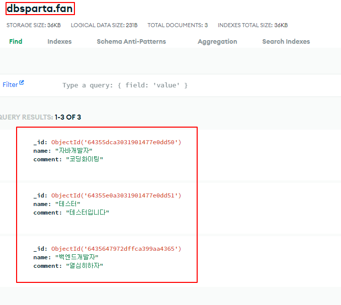 👉왼쪽은 결과물 / 오른쪽은 MongoDB에 넣은 데이터값