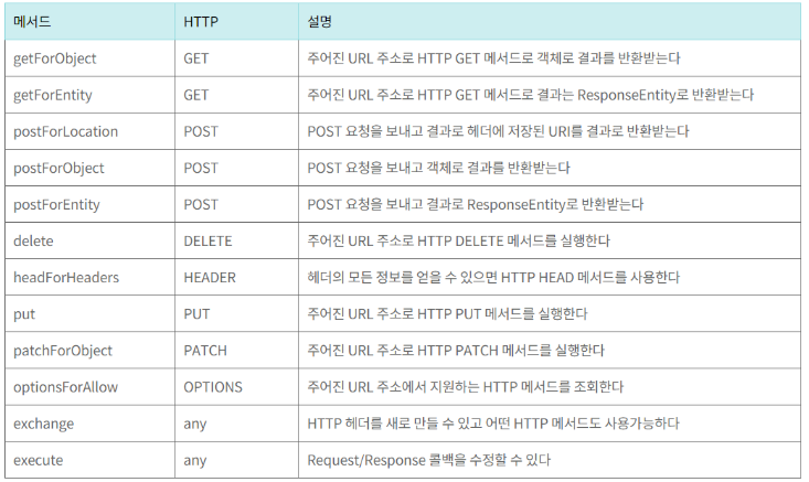 ● RestTemplate 지원 메서드