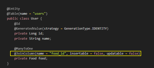 @JoinColumn(name = "food_id")