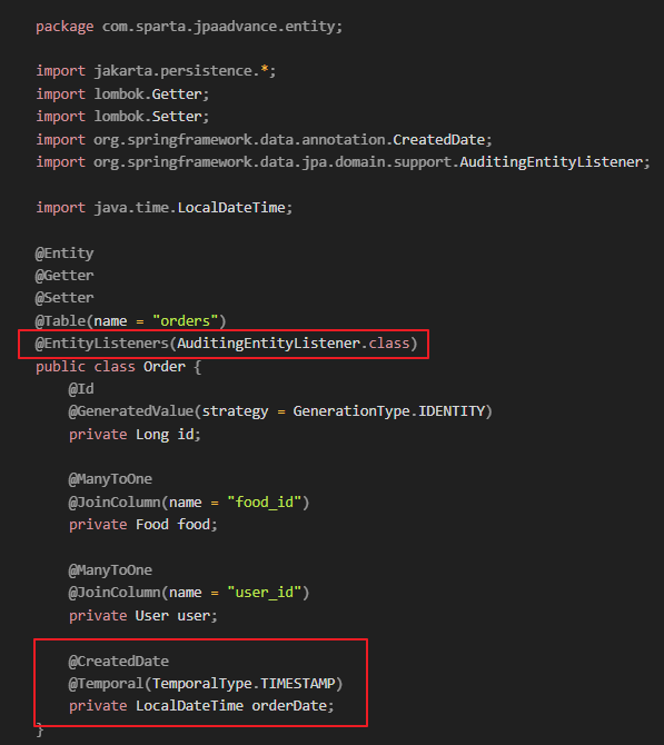 food.getUserList().add(this); // 외래 키(연관 관계) 설정