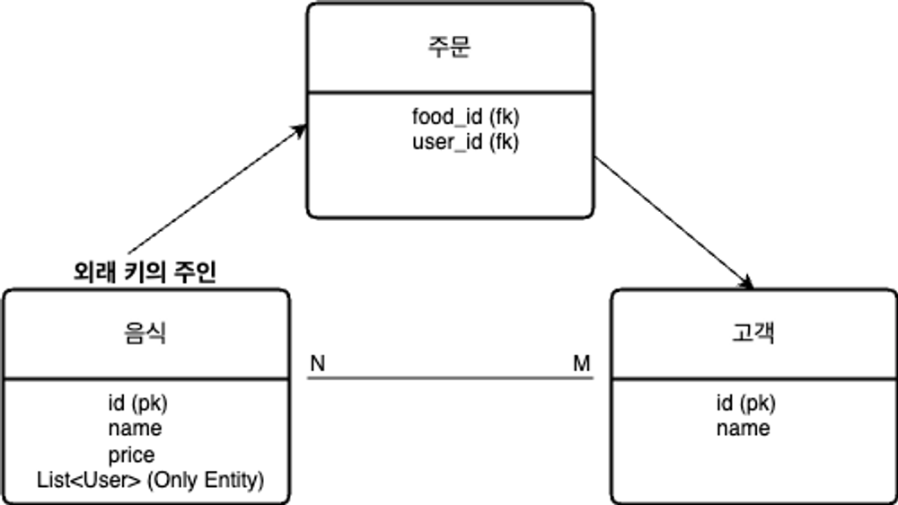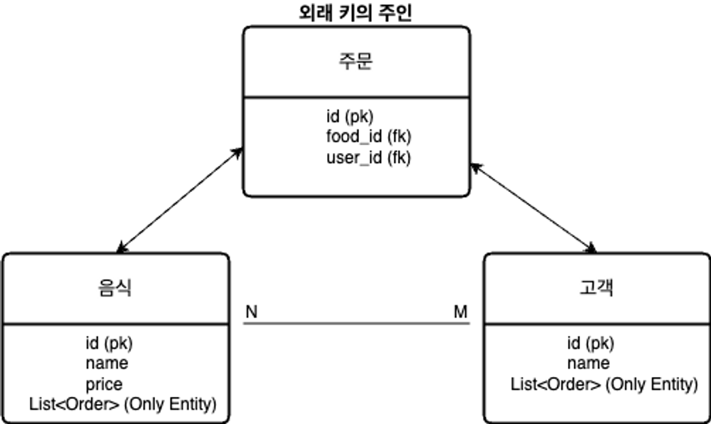 food.getUserList().add(this); // 외래 키(연관 관계) 설정