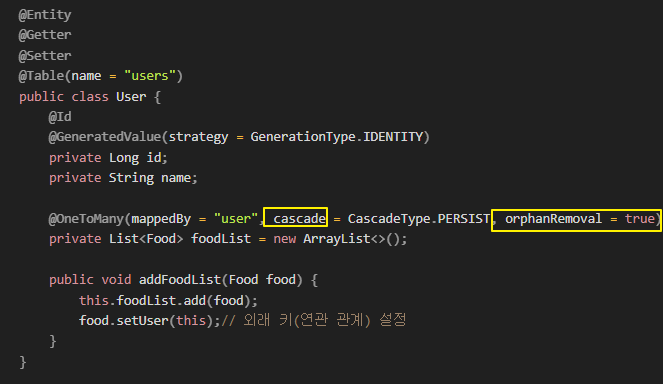 2. 편의성 : 부모엔티티에서 자식 엔티티를 삭제하는 로직을 따로 구현 할 필요 없음